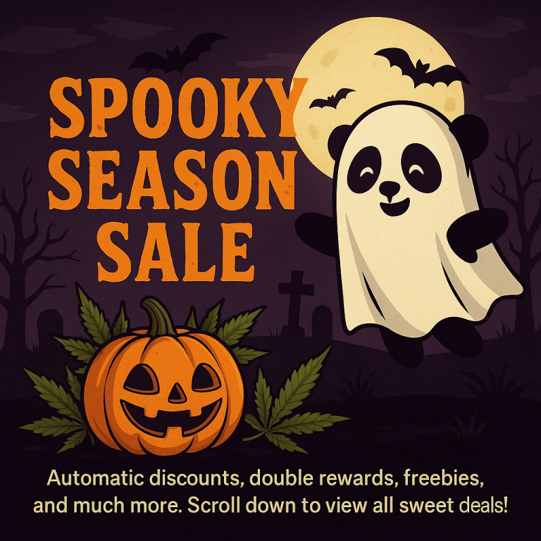 Spooky Season is here with the best Halloween weed deals Canada has to offer! All October, enjoy 15% off regular products, 10% off bulk, and 20% off wholesale orders over $999. Plus, our spooky panda brings you weekly surprise price drops, $0 GTA same-day delivery, and free Canada-wide shipping at $175+. Don’t forget—earn 1.5×–2× Buddy Bucks rewards on every purchase.